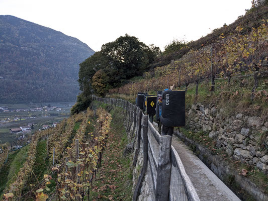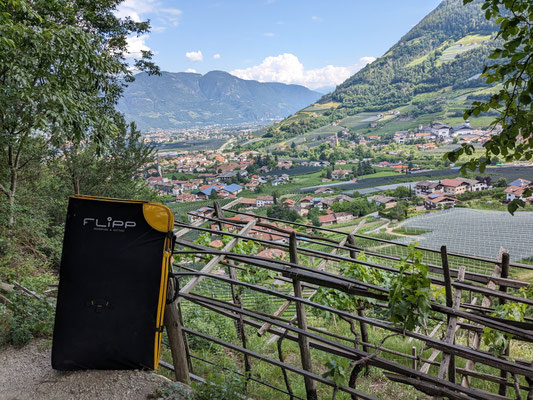Bouldern in Algund findet in wunderschöner Landschaft, an einem Südhang mit tollem Ausblick ins traumhafte Berg Ambiente statt.